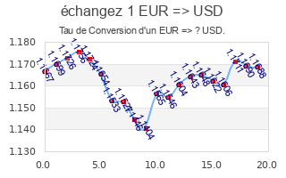 The conversion rates are supplied by ECB (European Central Bank) renewed daily, they are only for reference during one day. Please see also the history of evolution, conversion rate of this currency, or the variation chart of EUR => USD. The cross table of world foreign currencies gives a global view, and the list of the World Currencies is also to be consulted.
